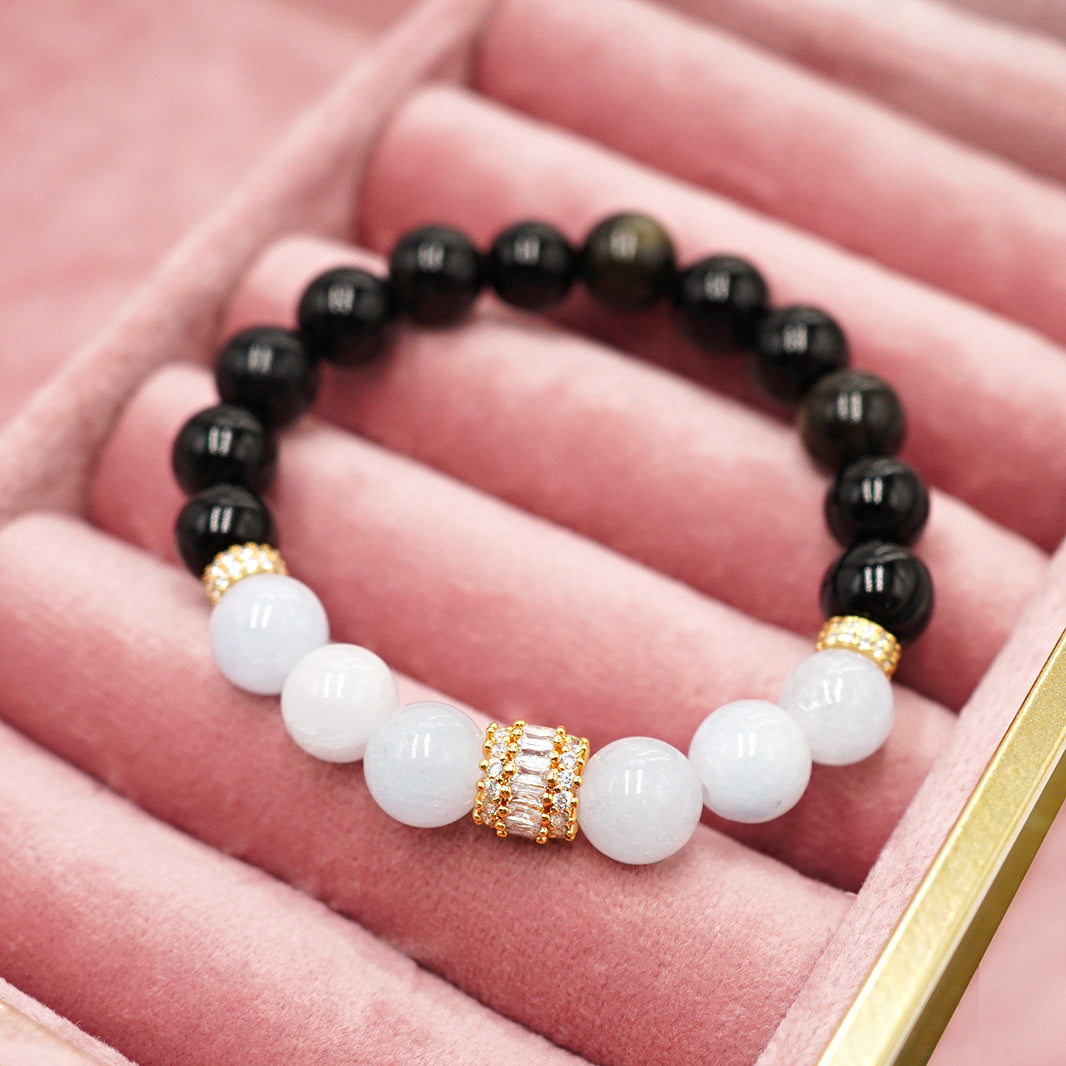 Rokassprādze My Heart ar rozā kvarcu, kvarcu un mēnessakmeni