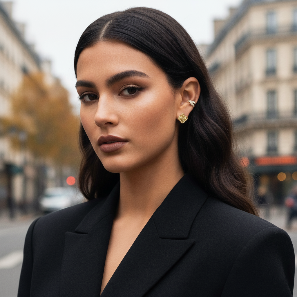 Rotu komplekts auskari ar ķedīti un kulonu sudraba tonī