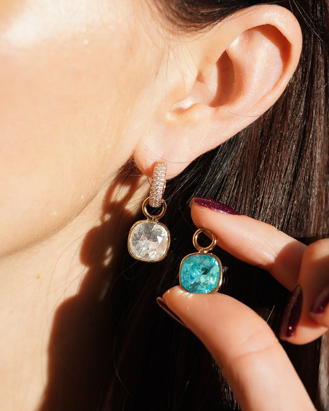 Izveido savu unikālo stilu ar auskariem 2in1 – pievieno un nomaini piekariņus pēc noskaņojuma. Izvēlies papildus piekariņus un radi bezgalīgas kombinācijas