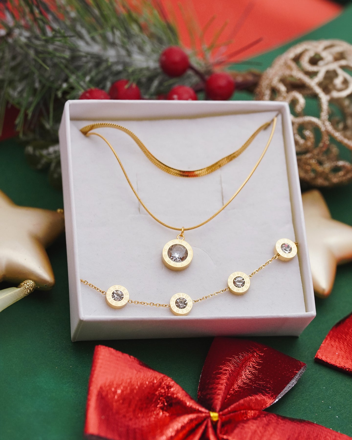 Komplekts - Divas kaklarotas par vienu cenu. Divas atsevišķās kaklarotas, kuras tu vari kombinēt, nēsājot kopā vai atseviški. Un kompletā vēl pieskaņota rokasorādze.