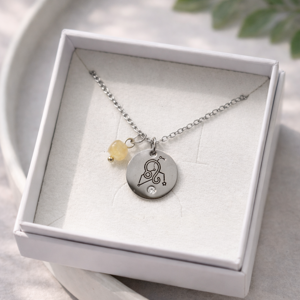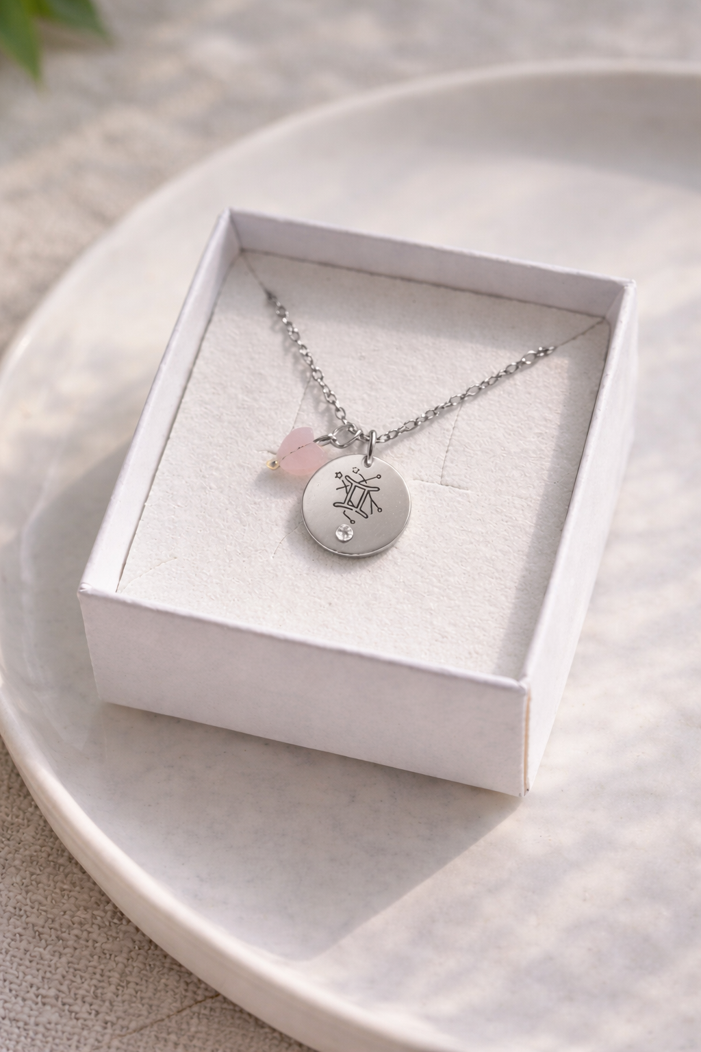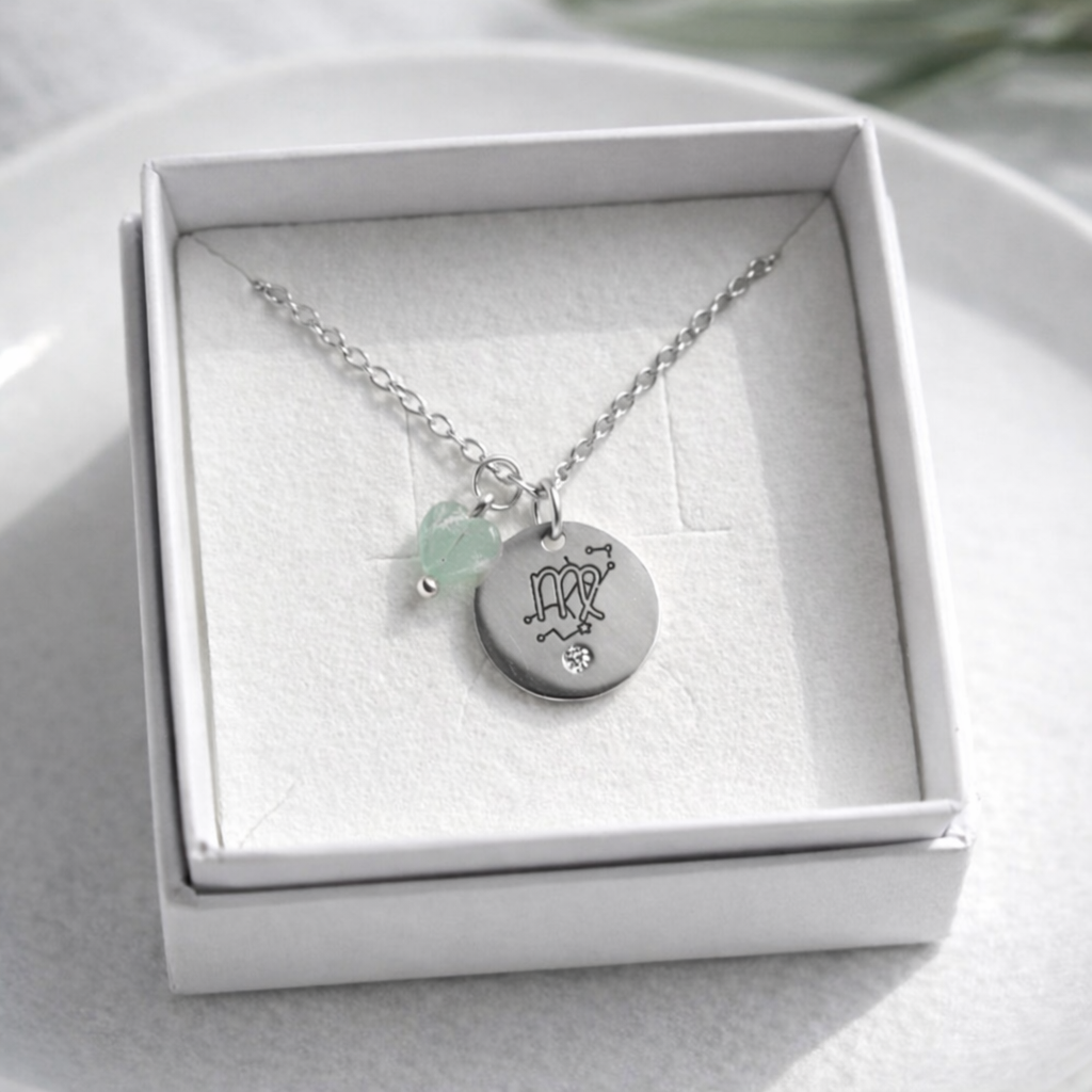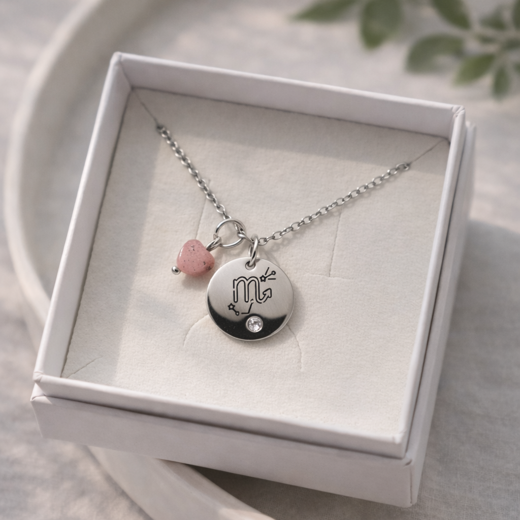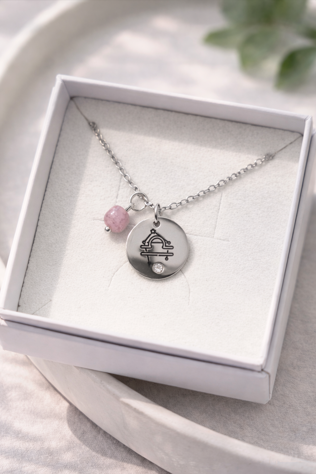 Eleganta kaklarota ar Zodiaka zīmes kulonu un dabīgo akmeni – īpaša rota, kas apvieno simboliku, stilu un dabas enerģiju. Katram Zodiaka zīmes kulonam ir pieskaņots dabīgais akmens, kas tradicionāli saistīts ar konkrētās zīmes īpašībām un enerģiju. Šī kaklarota ir gan skaists aksesuārs ikdienai, gan personiska dāvana ar nozīmi.