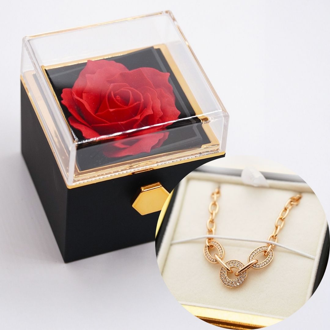 Dāvanu kastīte ar Mūžīgo rozi un rotu