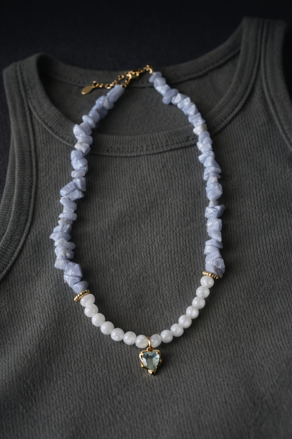Šī kaklarota ir radīta sievietei, kura vēlas dzīvot saskaņā ar savu intuīciju un iekšējo spēku. Tajā apvienots maigs, mirdzošs mēnessakmens ar dabīgiem ahāta čipsiem – divi akmeņi, kas enerģētiski papildina viens otru.