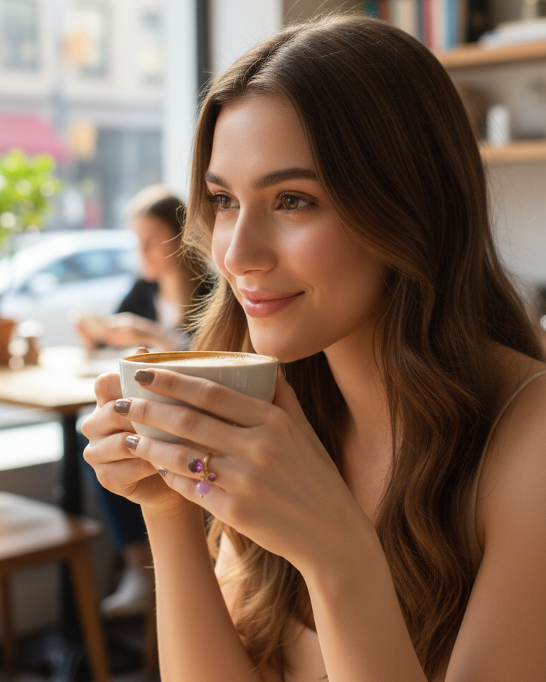 Akmens mirdzums maigi rezonē ar sirds un sakrālo čakru, līdzsvarojot emocijas un ļaujot enerģijai plūst brīvi. Tas ir ideāls rotājums sievietei, kura vēlas būt atvērta mīlestībai, kaislei un autentiskai sievišķībai.