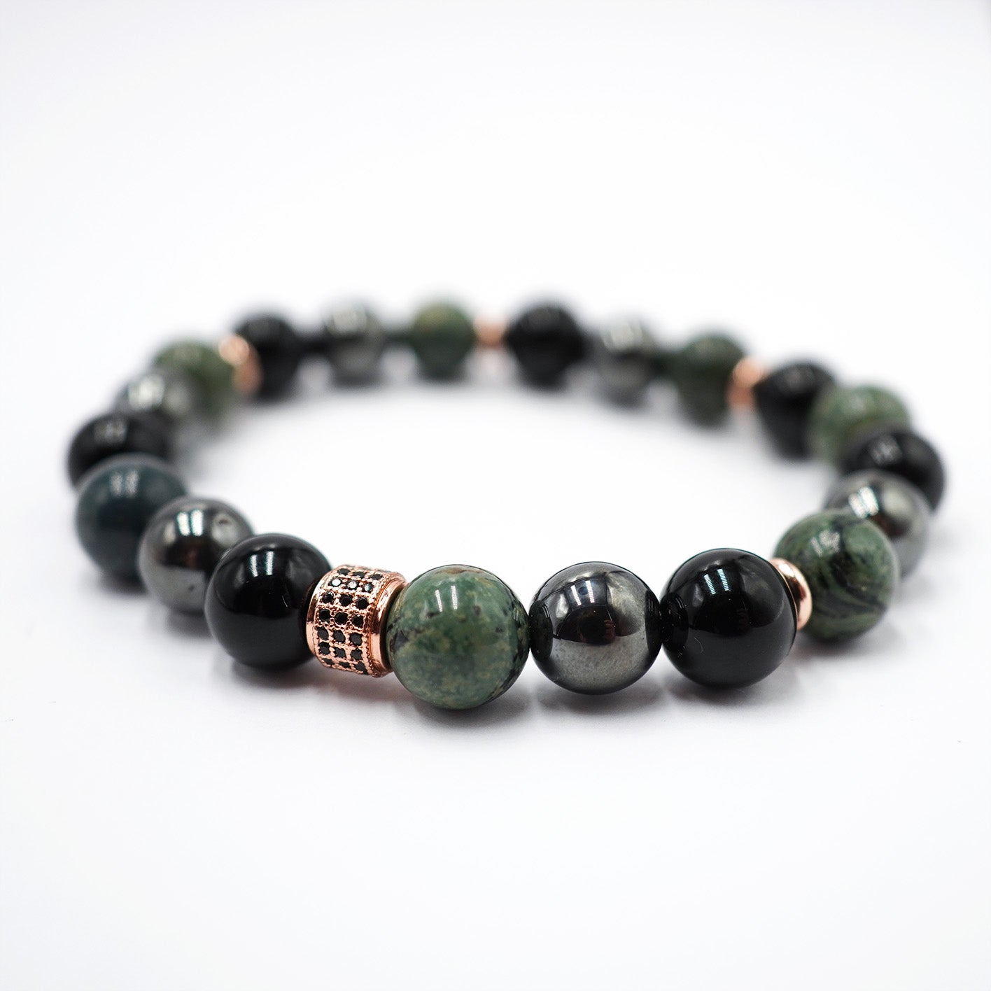 Oniksa, hematīta un jašmas rokassprādze vīriešiem