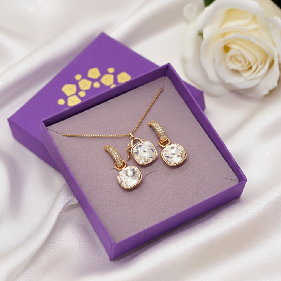 Rotu komplekts auskari un ķēdīte ar kulonu Radiant Grace