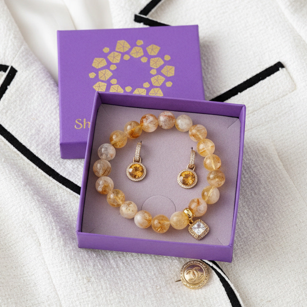 Komplekts Auskari 2in1 sparkles un citrīna rokassprādze
