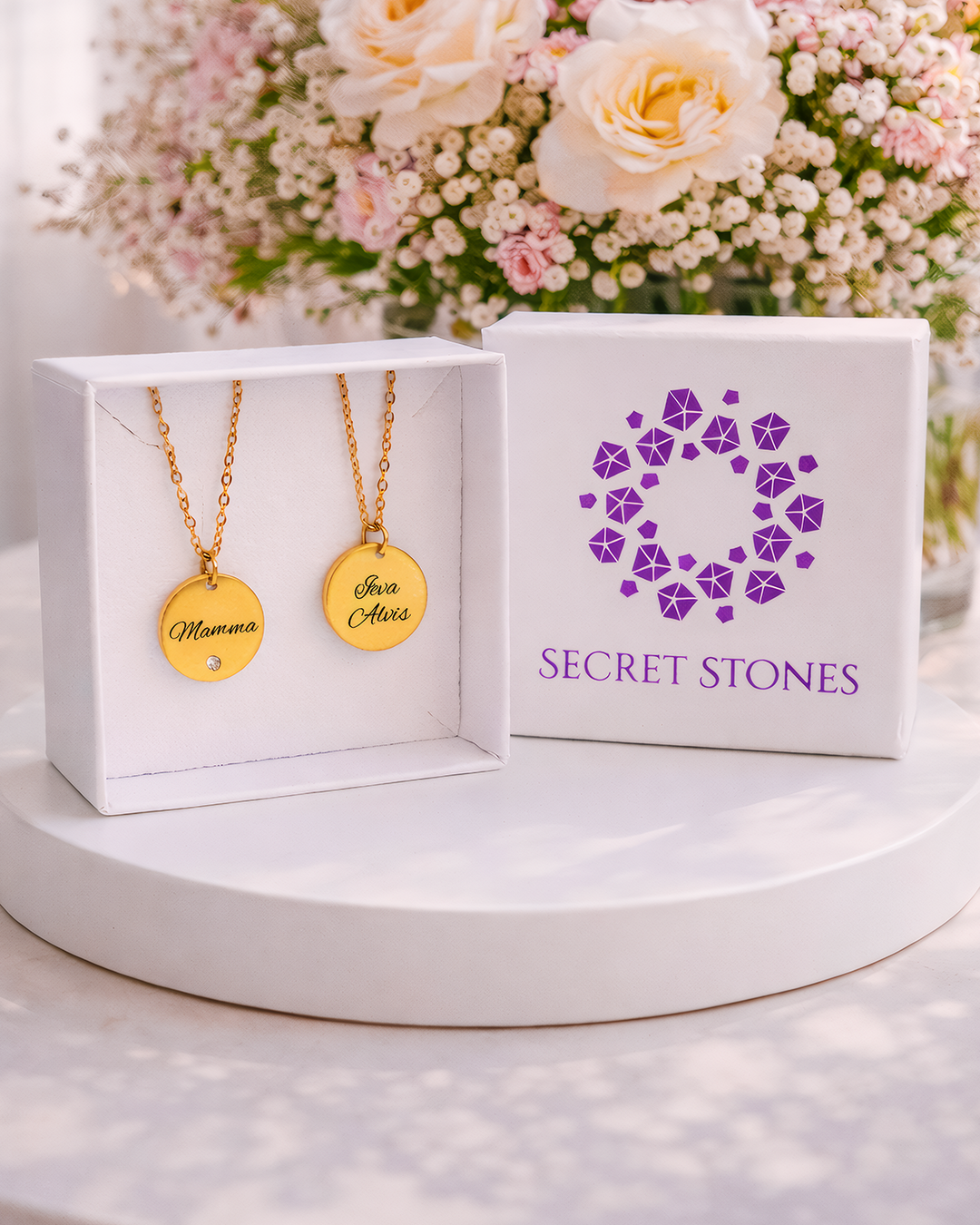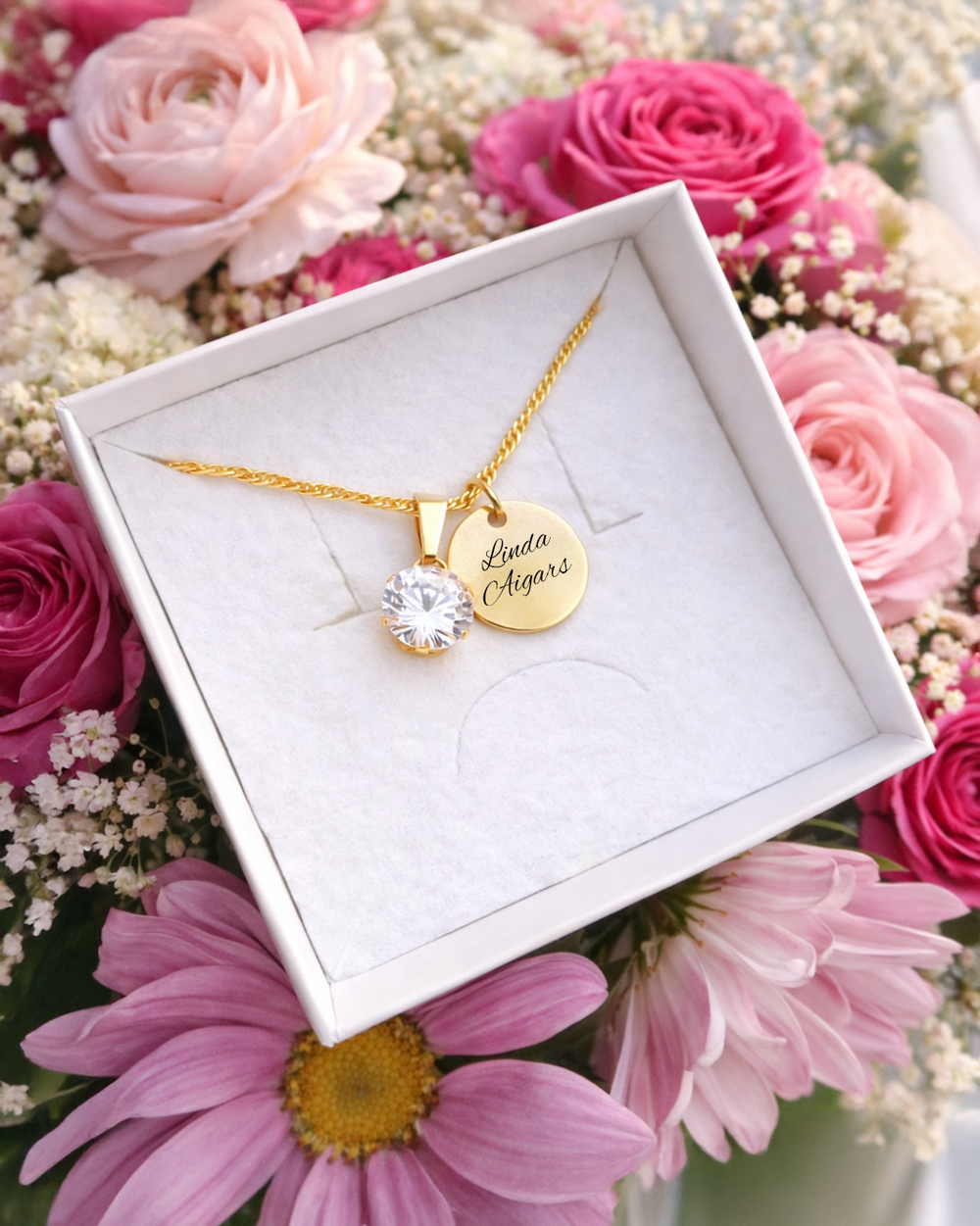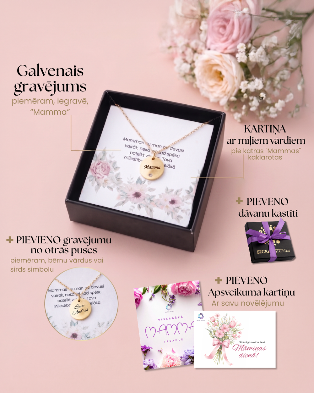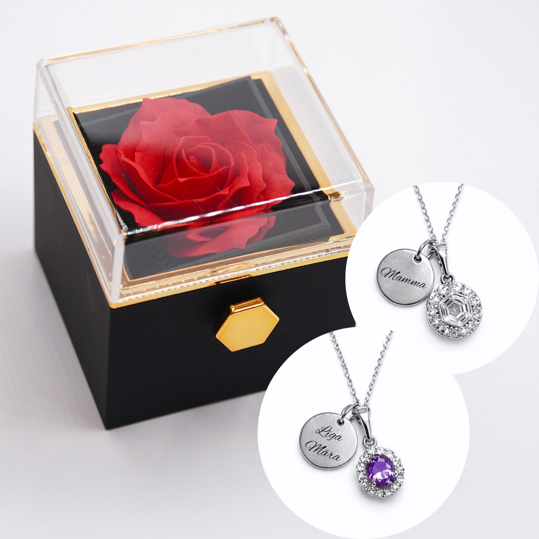 Mūžīgā roze + kaklarotas ar gravējumu