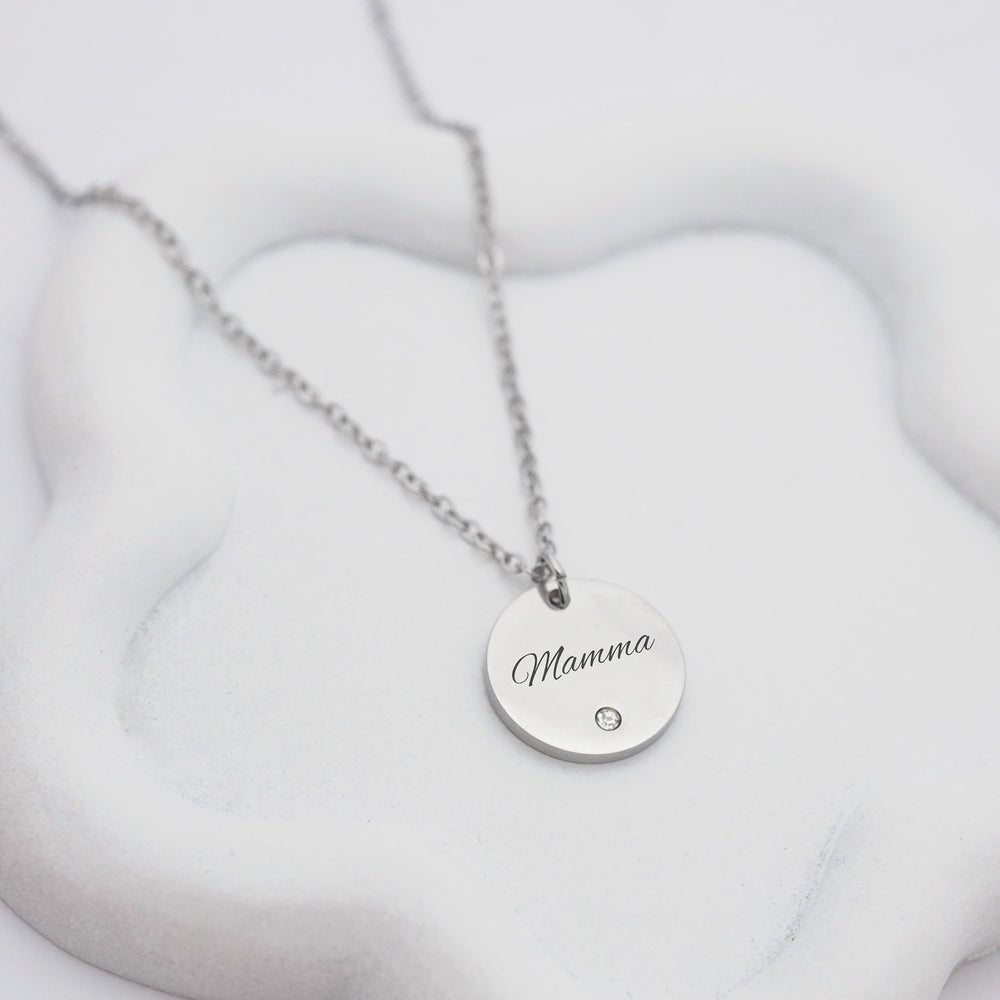 Kaklarota ar tavu gravējumu Apaļš kulons, sudraba krāsā