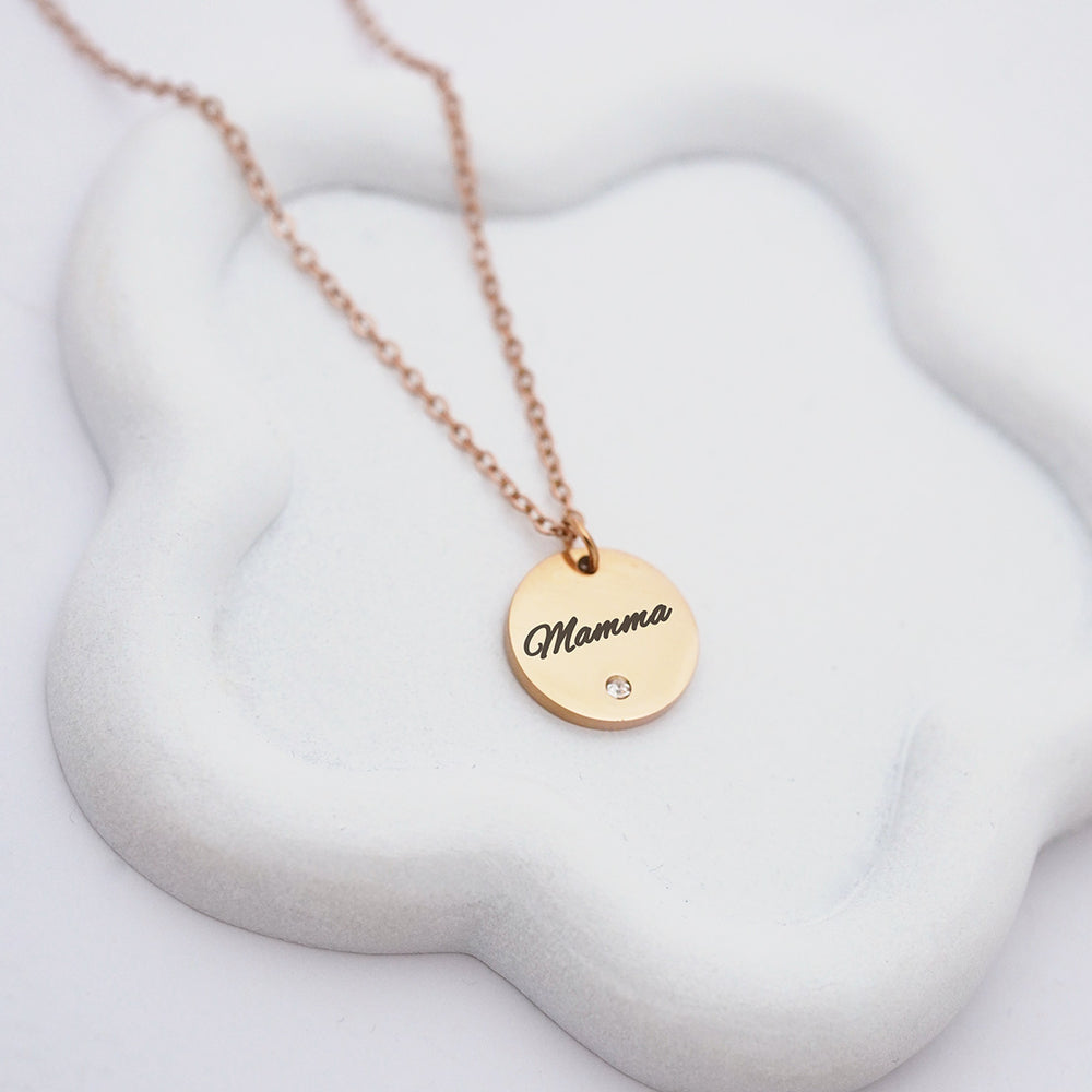 Kaklarota ar tavu gravējumu Apaļš kulons, rozā zelta