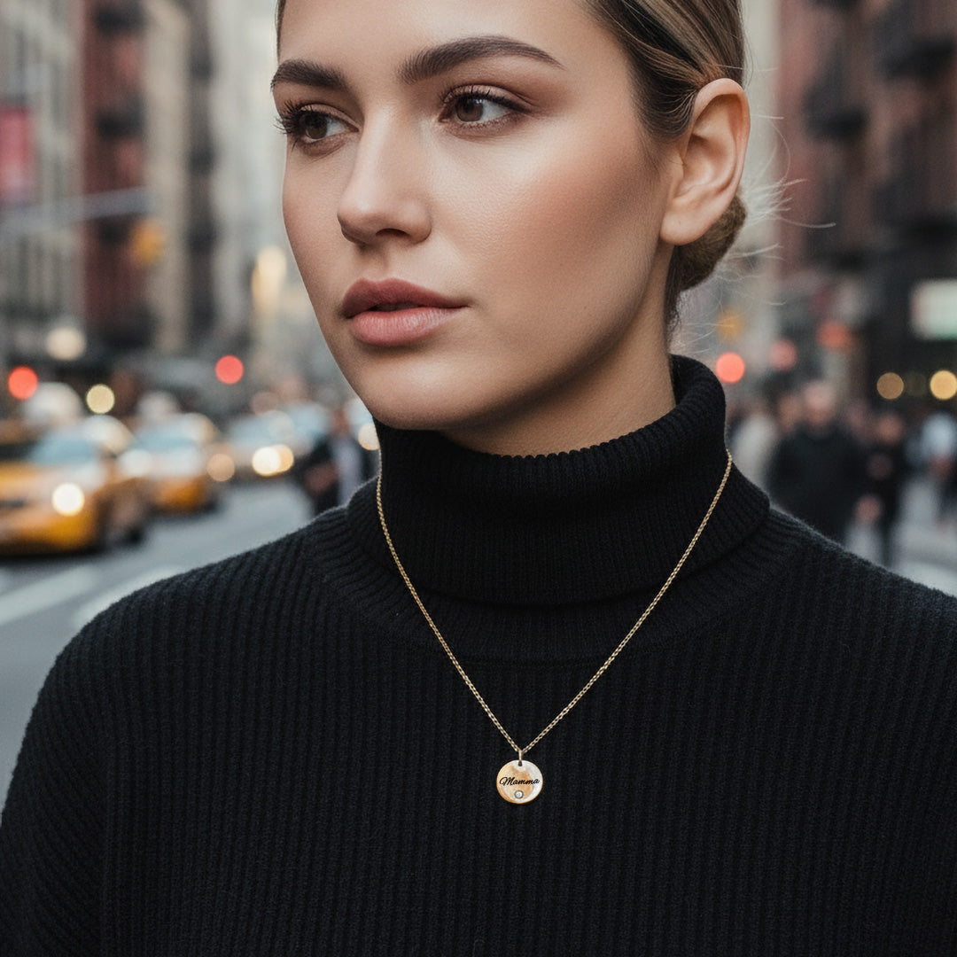 Kaklarota ar tavu gravējumu Apaļš kulons, zelta