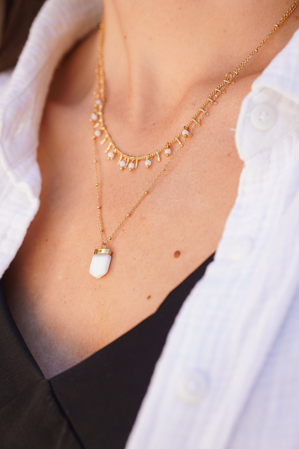 Dubultā Kaklarota ar Piena Kvarcu Radiant Balta