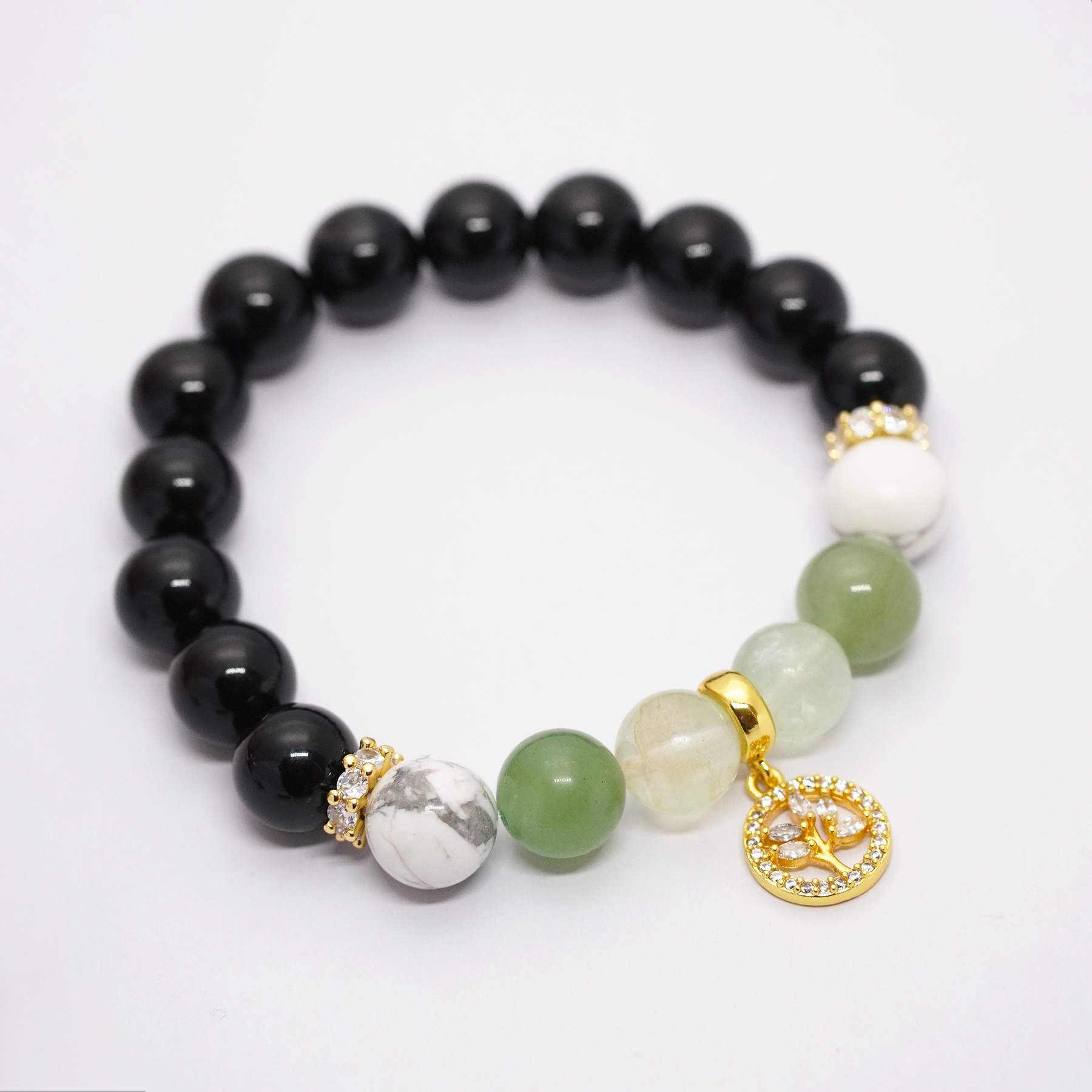Mežāža rokassprādze ar oniksu, hovlītu, fluorītu un avanturīnu ♑