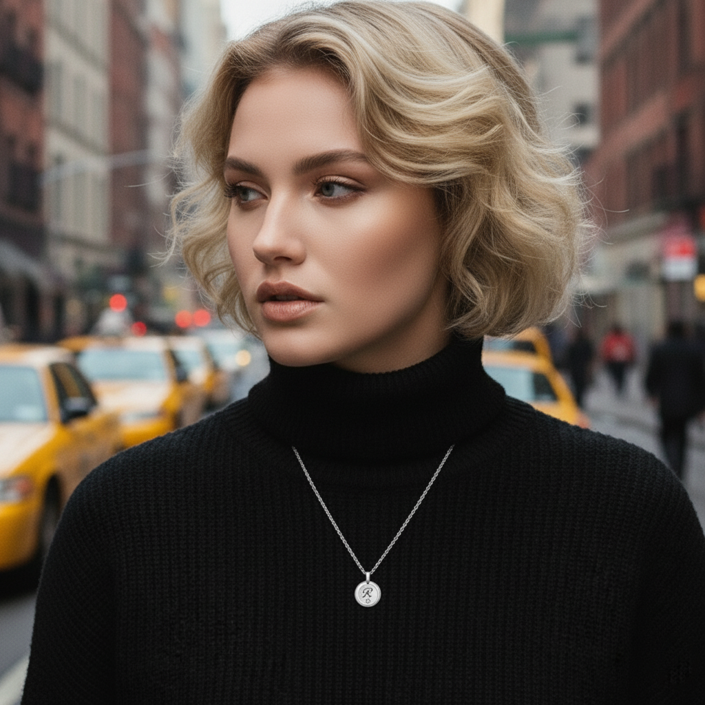 Kaklarota ar tavu gravējumu Apaļš kulons, sudraba krāsā