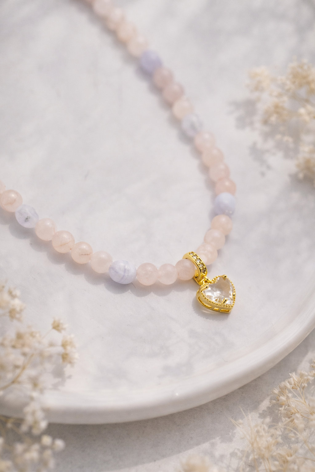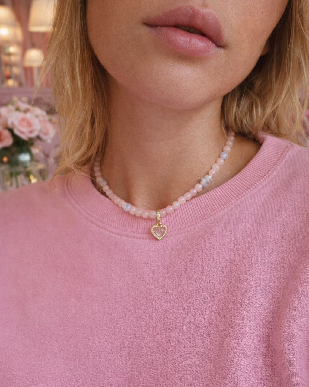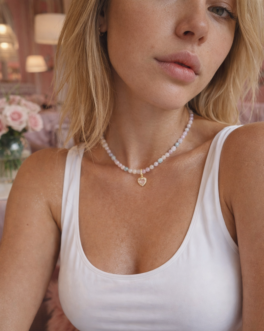 Ienes tavā ikdienā maigumu un sievišķīgu enerģiju ar šo eleganto, roku darināto kaklarotu. Katrs elements ir rūpīgi izvēlēts, lai veidotu harmonisku un iedvesmojošu rotu, kas ne tikai papildina tavu tēlu, bet arī sniedz emocionālo atbalstu.
