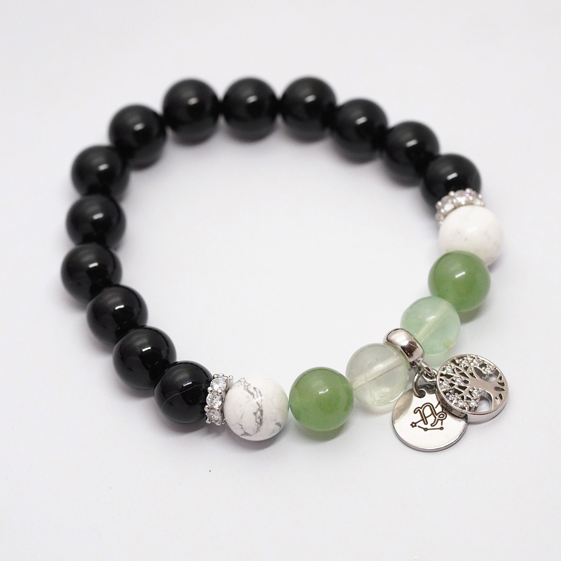 Mežāža rokassprādze ar oniksu, hovlītu, fluorītu un avanturīnu ♑