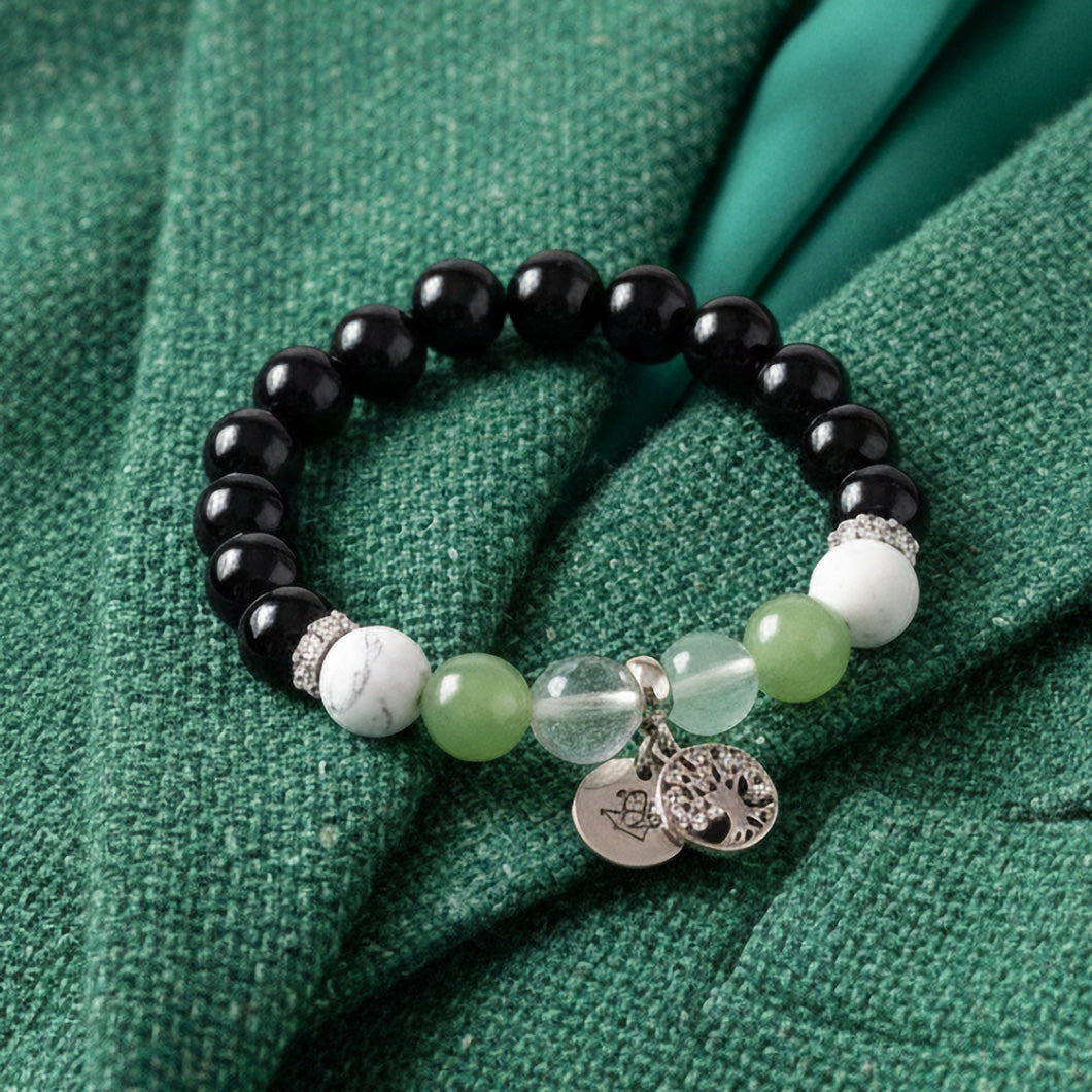 Šī rokassprādze radīta Mežāža mērķtiecīgajai, stabilajai un ambiciozajai dabai. Tā apvieno akmeņus, kas palīdz saglabāt fokusu, iekšējo mieru un pārliecību ceļā uz panākumiem.