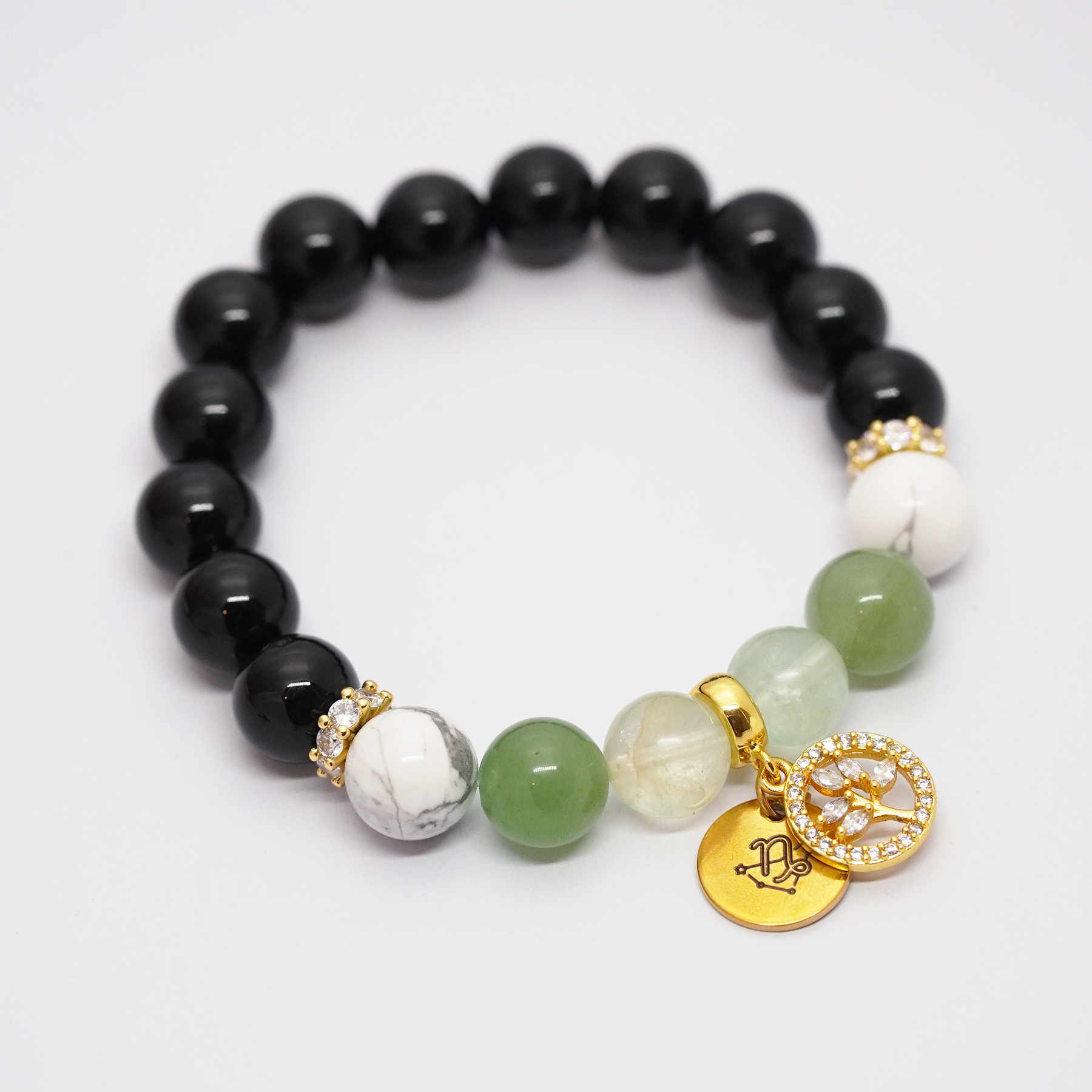 Mežāža rokassprādze ar oniksu, hovlītu, fluorītu un avanturīnu ♑