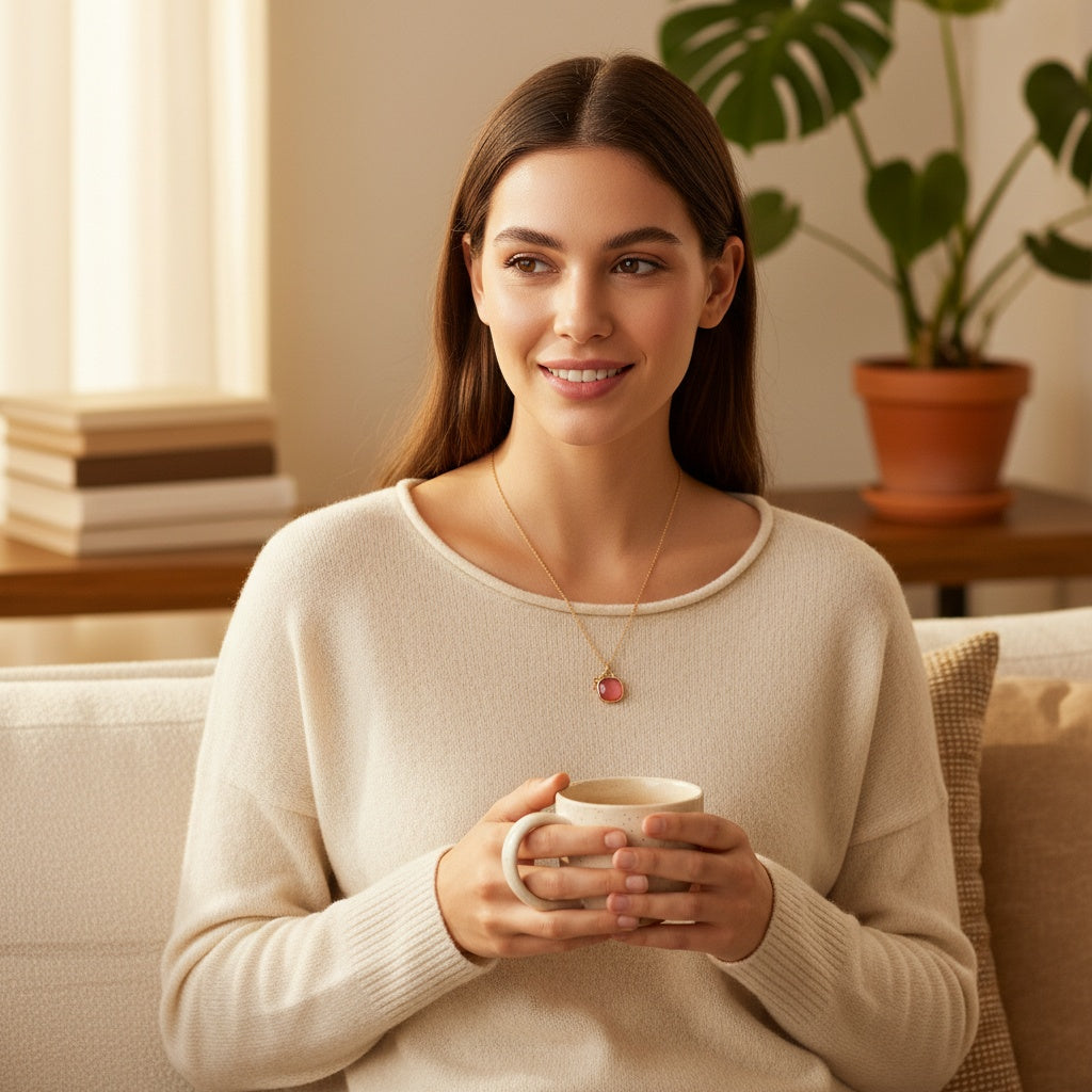 - Ķēdītei un kulonam ir ilgnoturīgs zelta pārklājums, kas saglabā savu krāsu saskarē ar ūdeni.