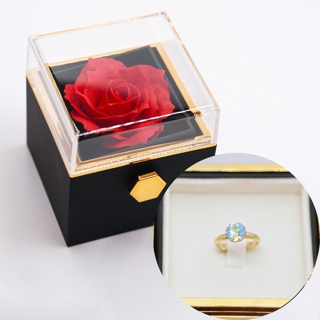 Dāvanu kastīte ar Mūžīgo rozi un gredzenu - šī elegantā dāvanu kastīte apvieno luksusa dizainu un simbolisku nozīmi. Tajā atrodas Mūžīgā roze, kas simbolizē mūžīgu mīlestību un skaistumu, un smalka kaklarota, kas padarīs dāvanu īpaši personīgu. Ideāla Mīlestības dienas dāvana.