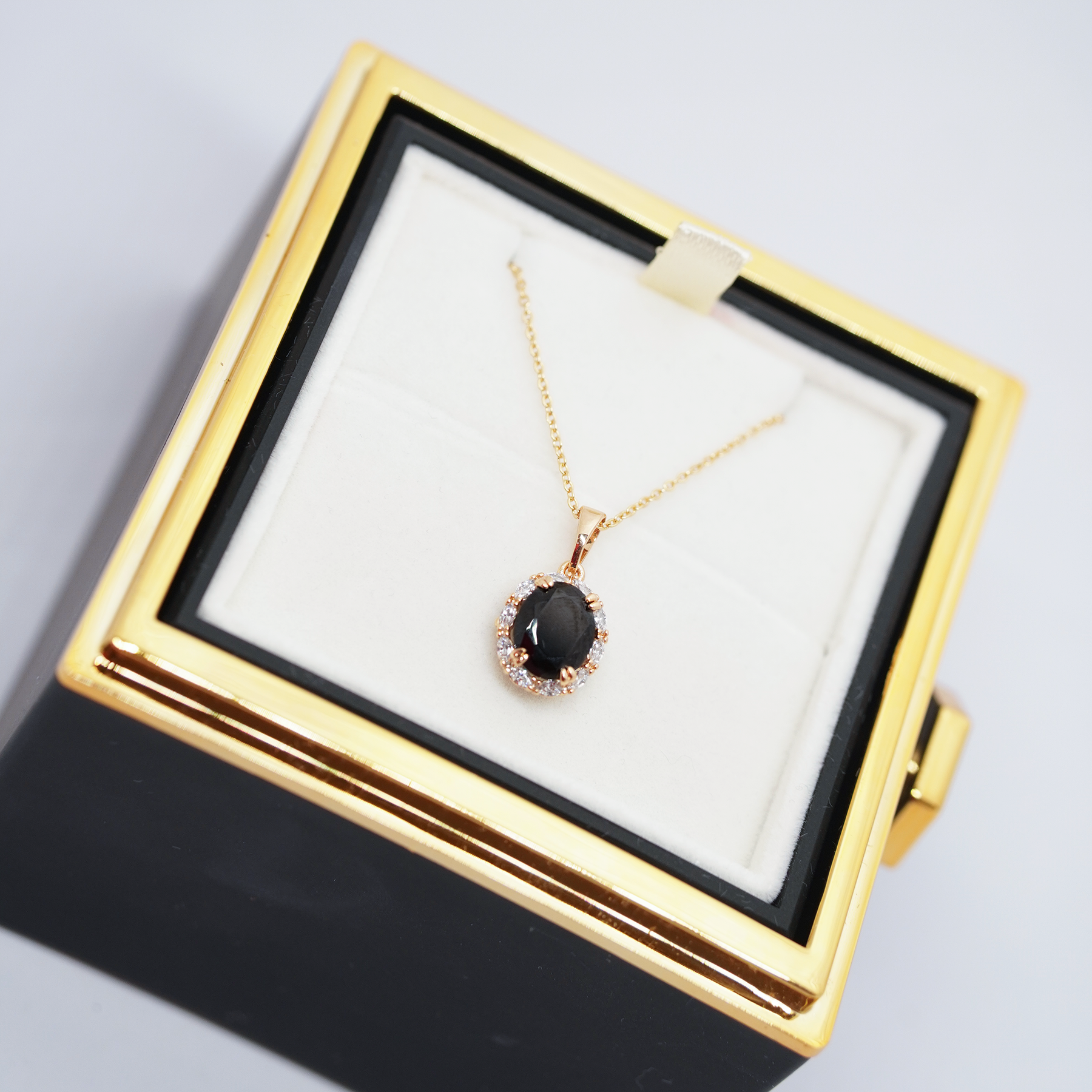 - Ķēdītei un kulonam ir ilgnoturīgs zelta pārklājums, kas saglabā savu krāsu saskarē ar ūdeni.