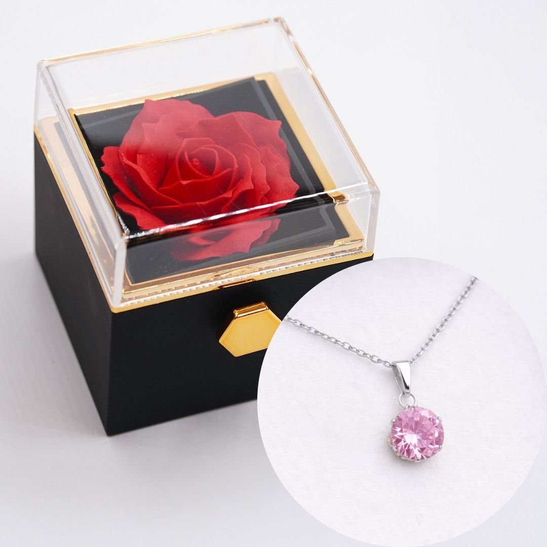 Dāvanu kastīte ar Mūžīgo rozi un kaklarotu - šī elegantā dāvanu kastīte apvieno luksusa dizainu un simbolisku nozīmi. Tajā atrodas Mūžīgā roze, kas simbolizē mūžīgu mīlestību un skaistumu, un smalka kaklarota, kas padarīs dāvanu īpaši personīgu. Ideāla Mīlestības dienas dāvana.