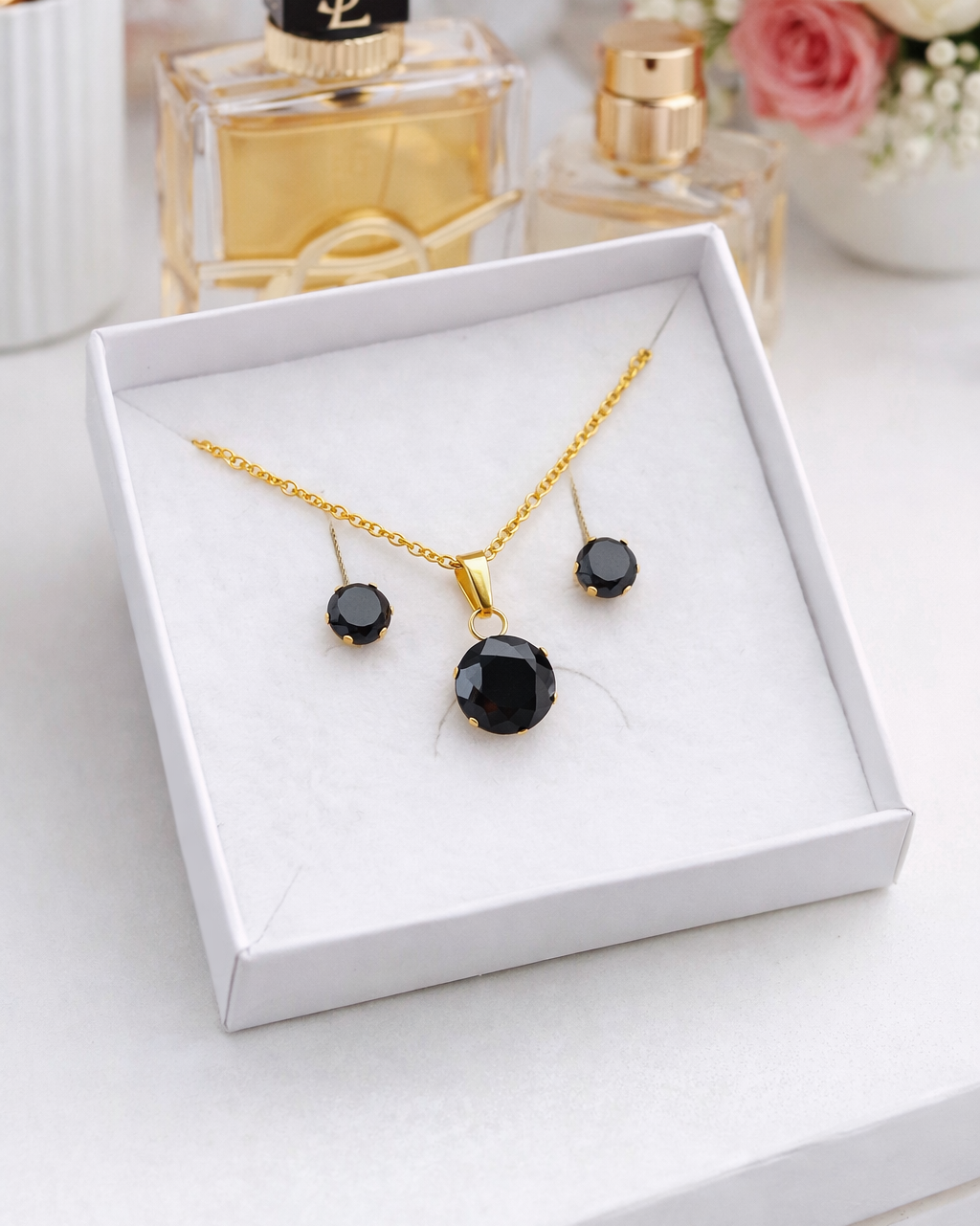 - Auskaru un kaklarotas materiāls - nerūsējošais tērauds ar anti-alerģisku pārklājumu, nesatur niķeli. Dzeltenā zelta krāsā.