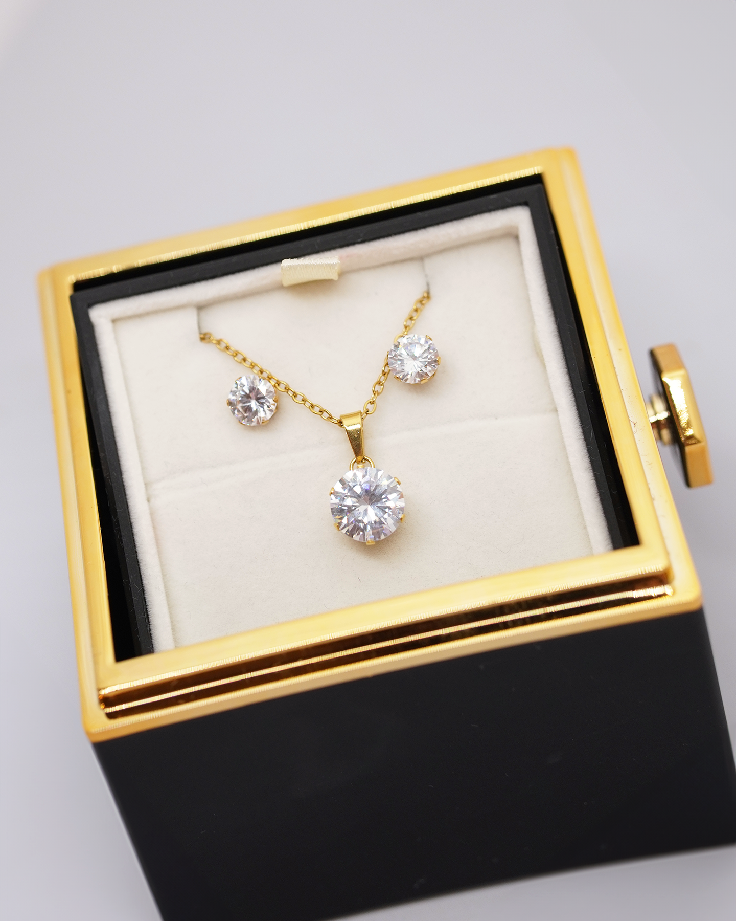 Dāvanu kastīte ar Mūžīgo rozi un kaklarotu ar nagliņu auskariem - šī elegantā dāvanu kastīte apvieno luksusa dizainu un simbolisku nozīmi. Tajā atrodas Mūžīgā roze, kas simbolizē mūžīgu mīlestību un skaistumu, un smalka kaklarota, kas padarīs dāvanu īpaši personīgu. Ideāla Mīlestības dienas dāvana.