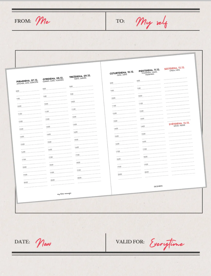 MyTimeManager 2026 ir Latvijā radīts plānotājs ar pievienoto vērtību.