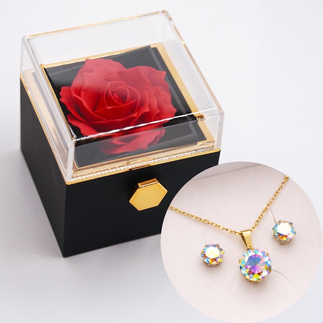 Mūžīgā roze + kaklarotu ar Mīlu tevi gravējumu