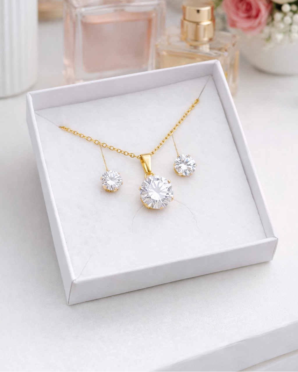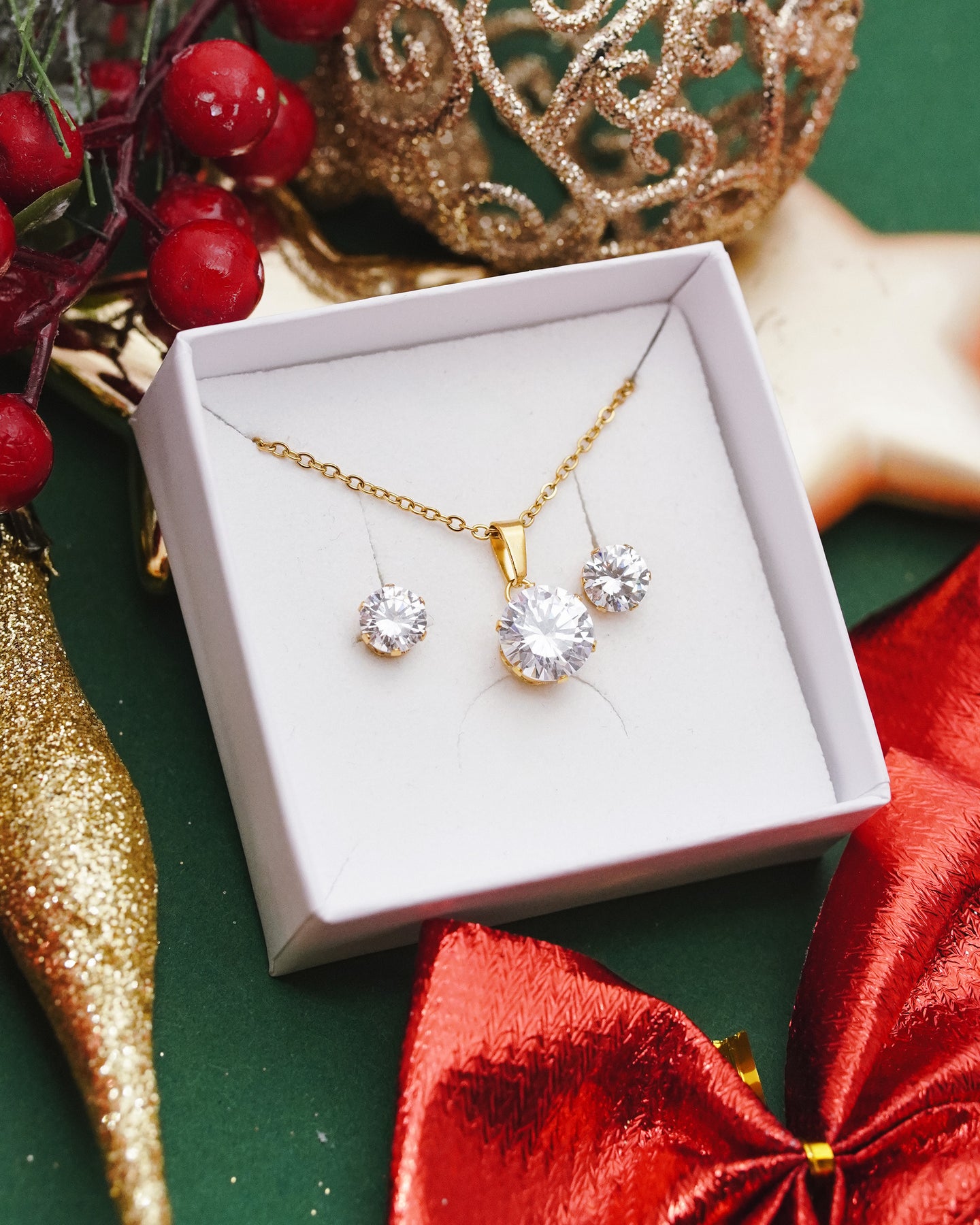 - Auskaru un kaklarotas materiāls - nerūsējošais tērauds ar anti-alerģisku pārklājumu, nesatur niķeli. Dzeltenā zelta krāsā.