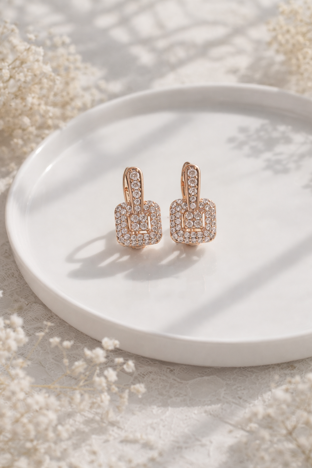 auskari ar cirkoniem zelta krāsā kvadrāta formas eleganti sieviešu auskari