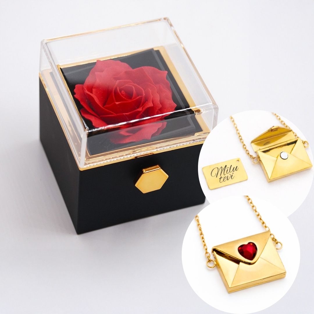 Mūžīgā roze ar kaklarotu Love letter + gravējums