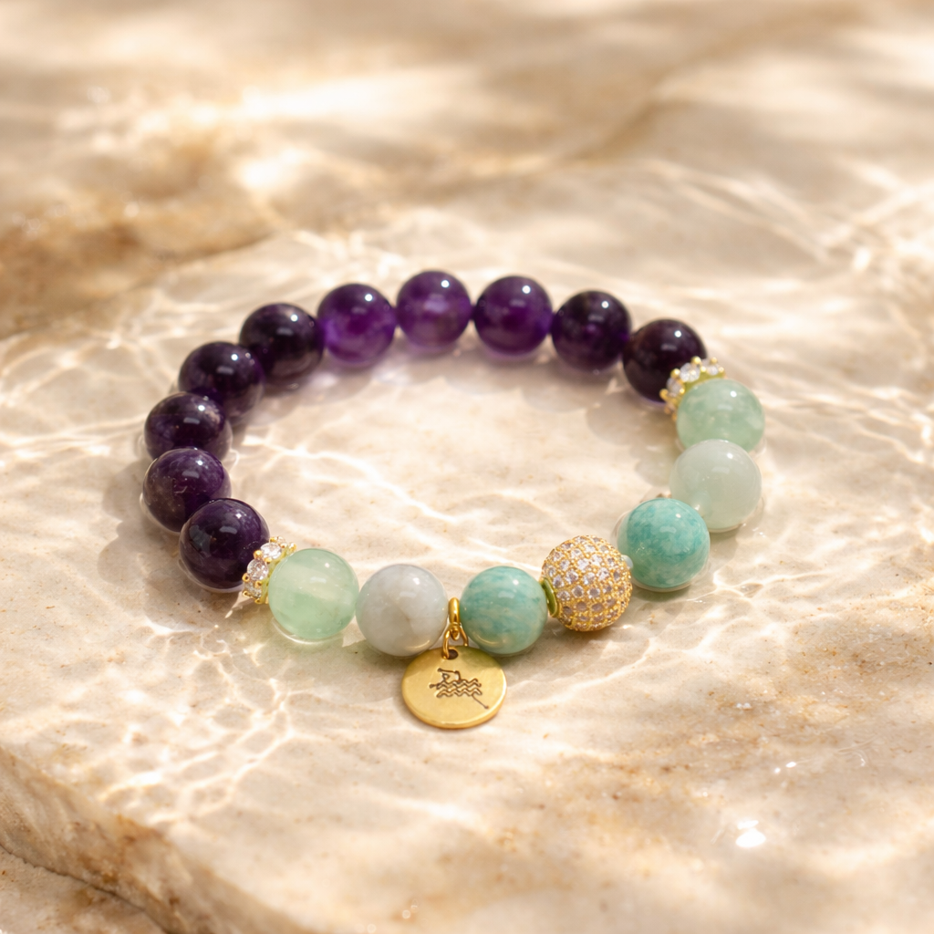 Tajā apvienoti Ūdensvīram atbilstoši akmeņi – ametists, fluorīts, akvamarīns un amazonīts, kas kopā veido harmonisku līdzsvaru starp prātu, intuīciju un sirdi.
