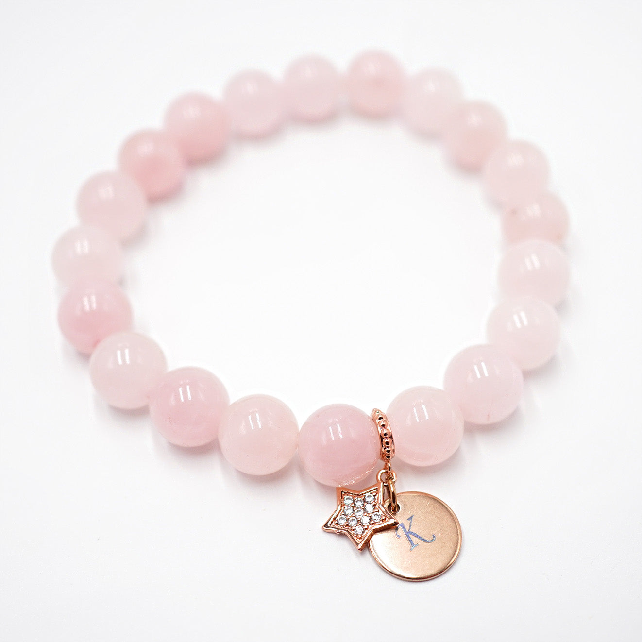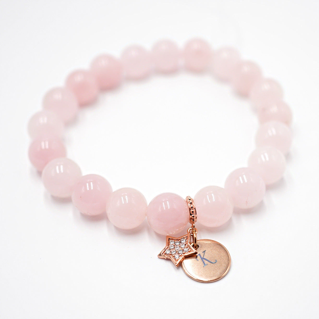 Rozā kvarca rokassprādze Zvaigzne ar gravējumu