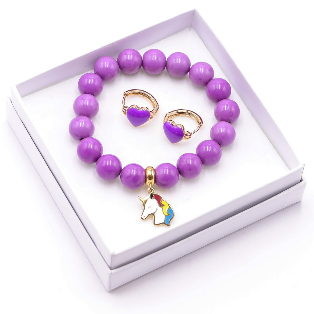Komplekts auskari un žadeīta rokassprādze lillā sirsniņa