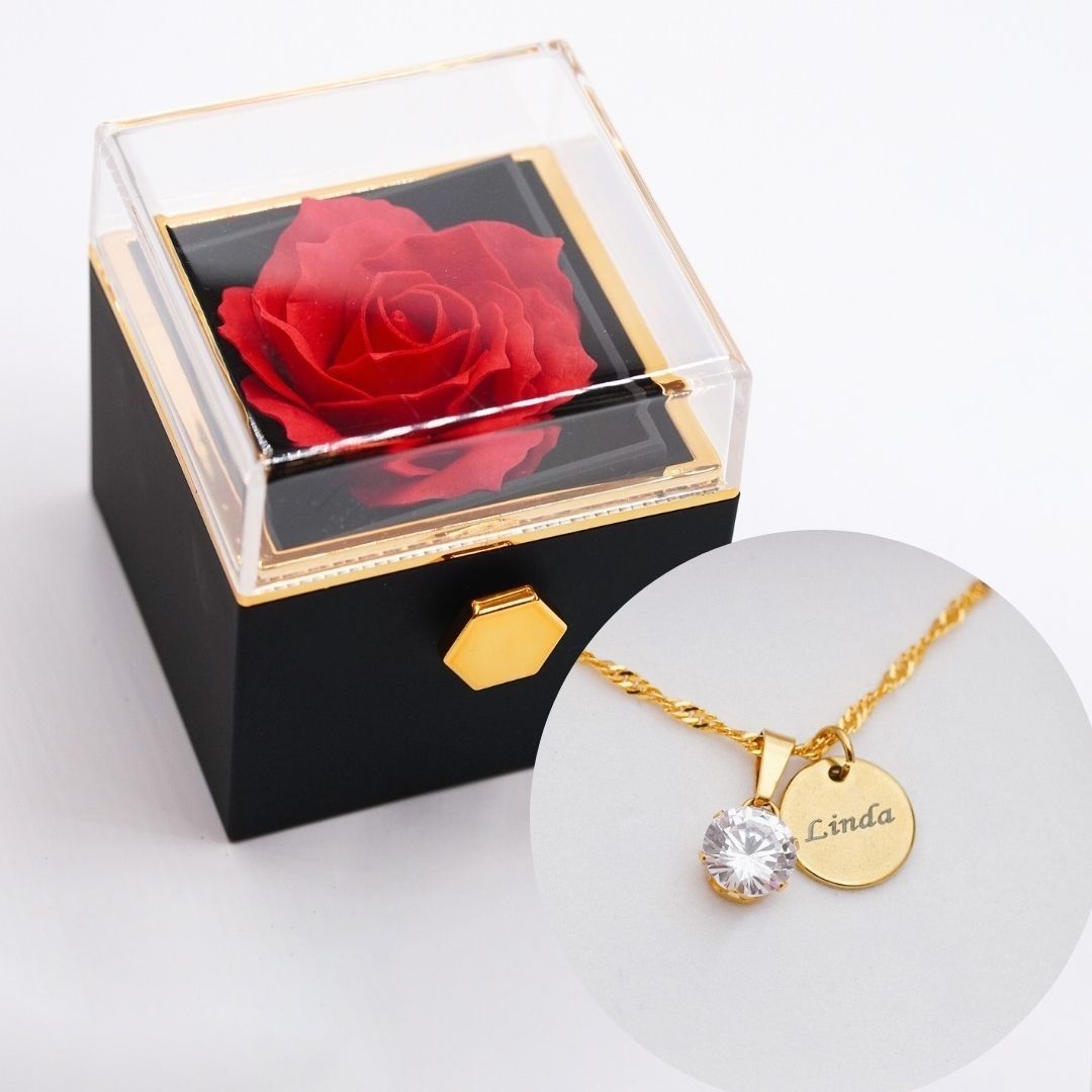 Mūžīgā roze ar kaklarotu ar gravējumu