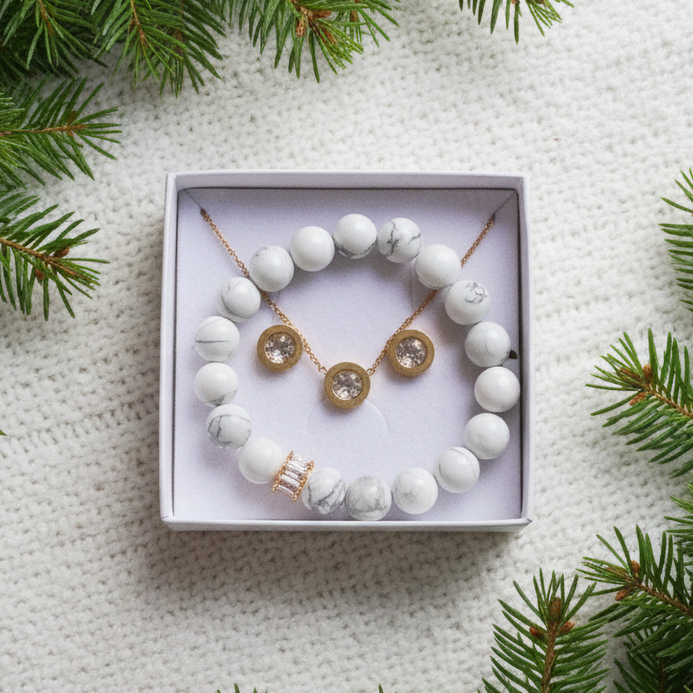 Rotu komplekts auskari un ķēdīte ar kulonu Night